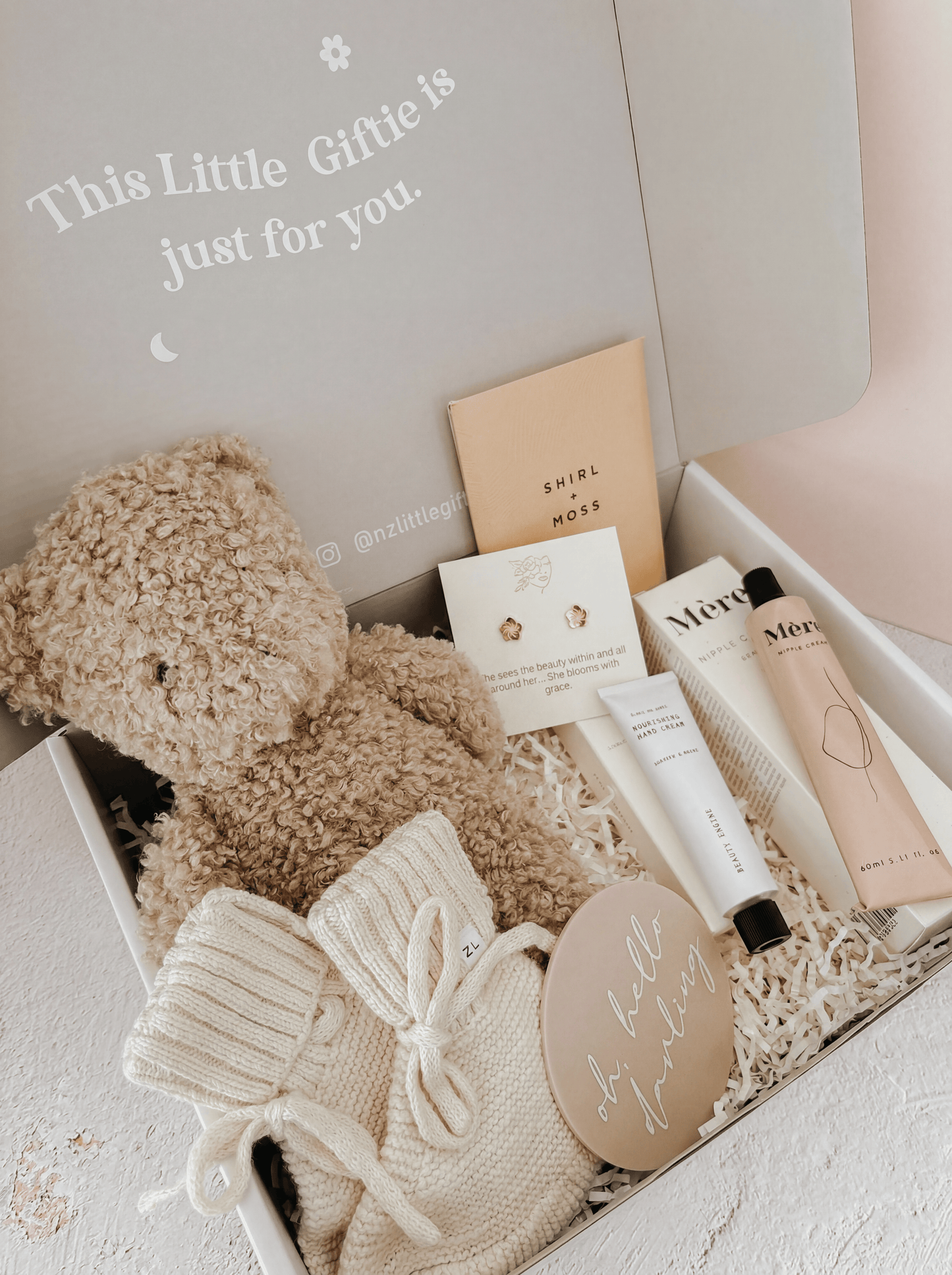 Every baby gift box is packed with care in Auckland, and delivered NZ and Australia wide. Making it easy to send a baby shower gift that feels personal and truly considered.